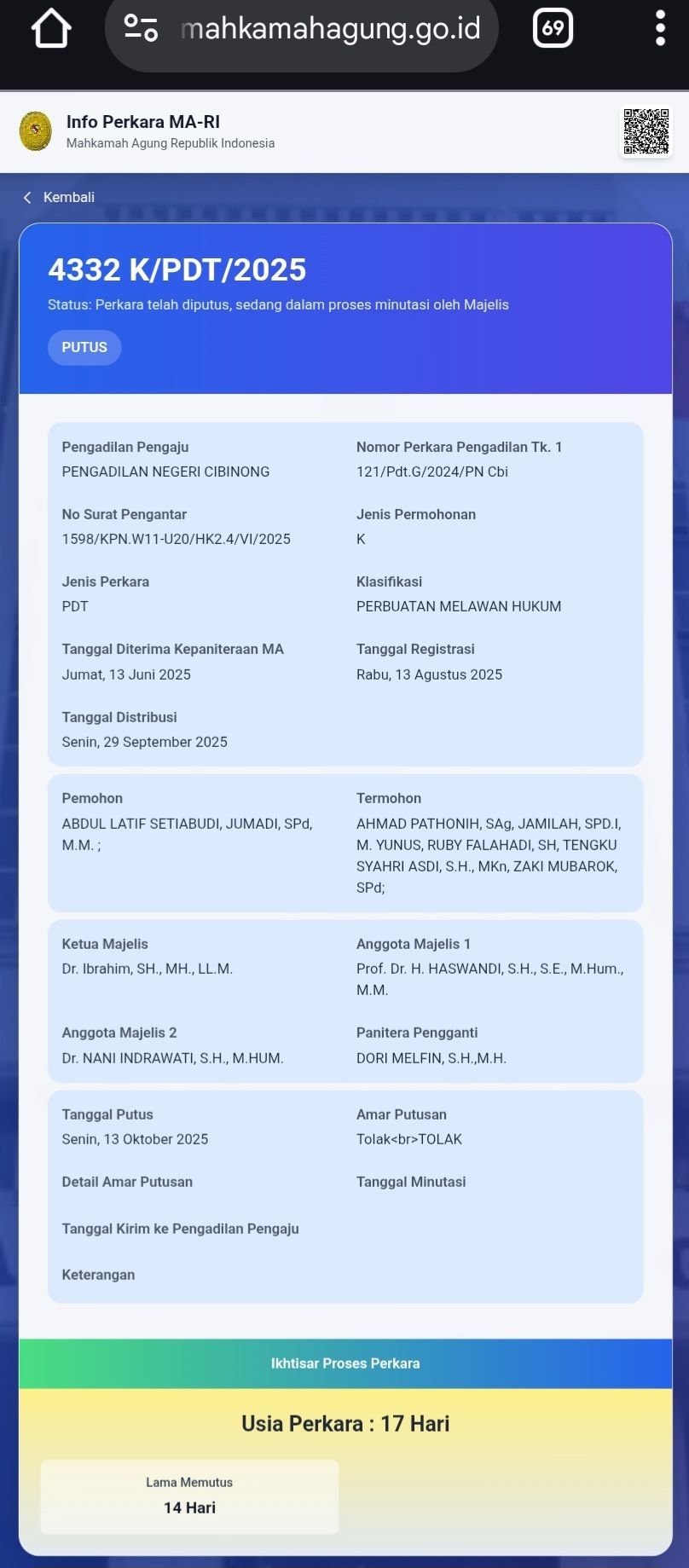 Detail Perkara di Mahkamah Agung: - Nomor Perkara: 4332 K/PDT/2025